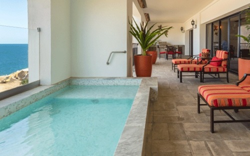 Our resort is located right on a rocky stretch of beach which is not swimmable but we offer shuttle ride to downtown and Medano Beach, Cabo’s most popular swimming spot is 5 minutes walking.